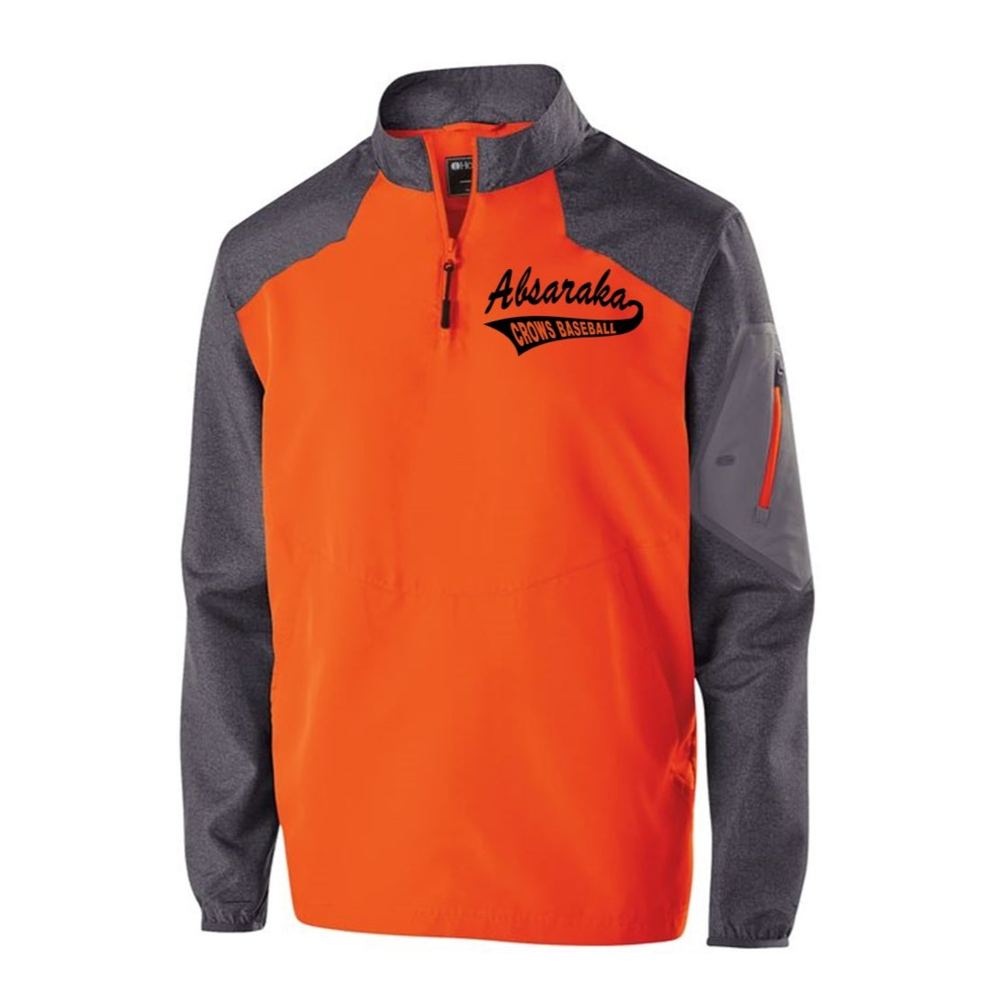Experience ultimate protection from the elements with the Absaraka Crows Raider Pullover Cage Jacket. Crafted from lightweight and noiseless Aero-Tec™ fabric, this quarter zip pullover boasts a sleeve pocket with media port and a front pouch pocket with inside stitched divider. Designed to fit true to size, the jacket also features a Raider print pattern on the sleeve, a woven label, and a convenient zipper. The set-in sleeves, spandex bound cuffs, and open bottom ensure a comfortable fit, while the Durable Water Repellent technology provides weather protection. Complete the look with an embroidered logo on the left chest.