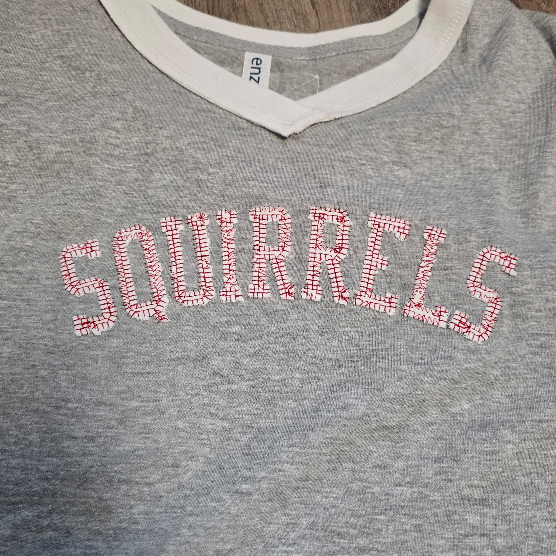Lightweight and laid-back, this CC Ladies tee blends comfort with personality. Crafted from a soft cotton-poly blend, it features a relaxed traditional fit with set-in sleeves and a crossover neckline finished with raw edges and double-needle stitching for durability. The signature jersey fabric includes ribbed trim at the neckline and sleeves, while playful raw edge detailing adorns the shoulder, side, and armhole seams. Topped with an adorable squirrels embroidered applique, it's the perfect everyday essential with a fun twist.