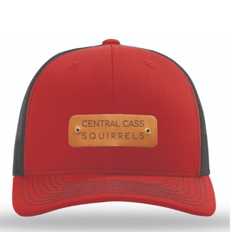A revamped Richardson 112 trucker hat with a quirky riveted Central Cass Squirrels leather patch.