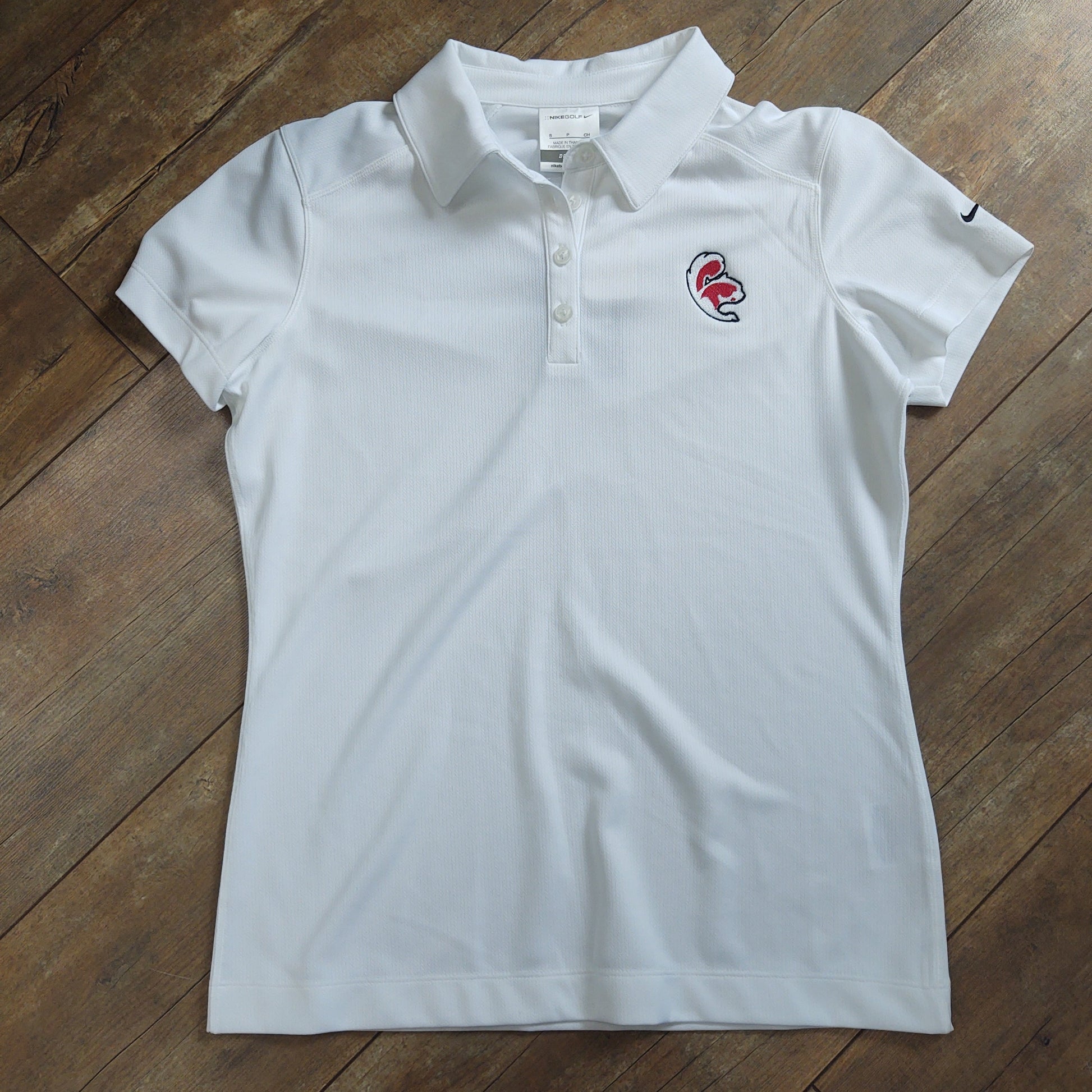 An understated pebble texture meets high-performance moisture -wicking from Dri-FIT fabric in this Nike style. Tailored for a feminine fit and designed to keep you comfortably dry, features include a self-fabric collar, four-button placket and open hem sleeves. Pearlized buttons are selected to complement the shirt color. The contrast Swoosh design trademark is embroidered on the left sleeve. Made of 3.9-ounce, 100% polyester.